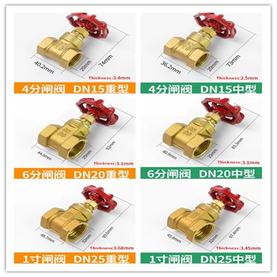 1/2" 3/4"1‘’ Female To Female Thread Two Way Brass gate valves DN15 20 25 water valve switch valve Internal Thread Gate valves