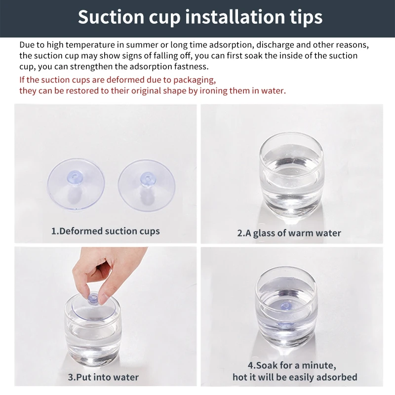 ☀.Easy to install: Suction cup design, simple and convenient installation, no need for drilling, simple and sturdy.