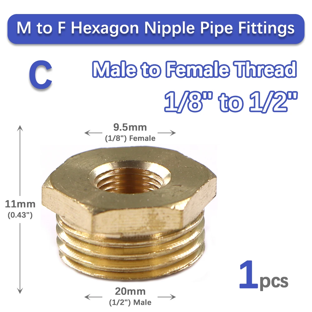 1/8" 1/4" 3/8" 1/2" 3/4" 1" 1.5" 2" Brass Pipe Fittings Hex Nipple Adapter BSP Male Female Thread Reducing Hexagon Bush Bushing