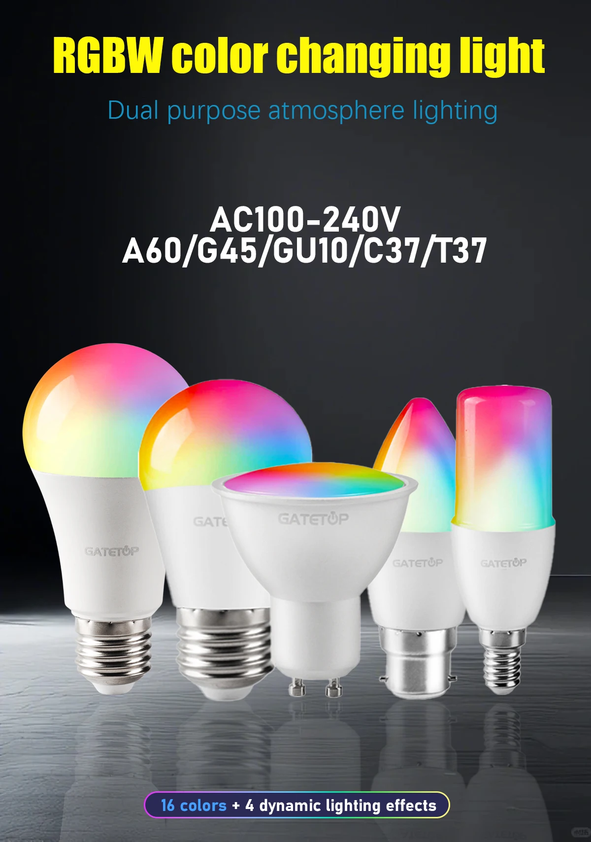 16 Colors RGB Dimmable Bulb E14 E27 B22 GU10 110V 220V Lamp Smart 24 Key Remote Control RGBW Light dimming Bulbs for livingroom