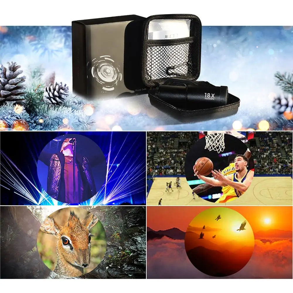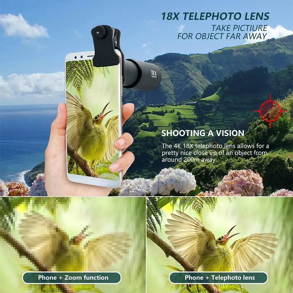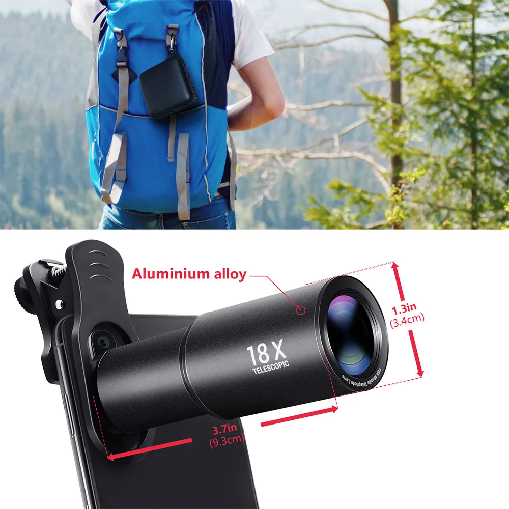 18X Zoom Telephoto Lens with Travel Case Aluminum HD Monocular Telescope Phone Camera Lens for iPhone Samsung Smartphone Mobile|Mobile Phone Lens