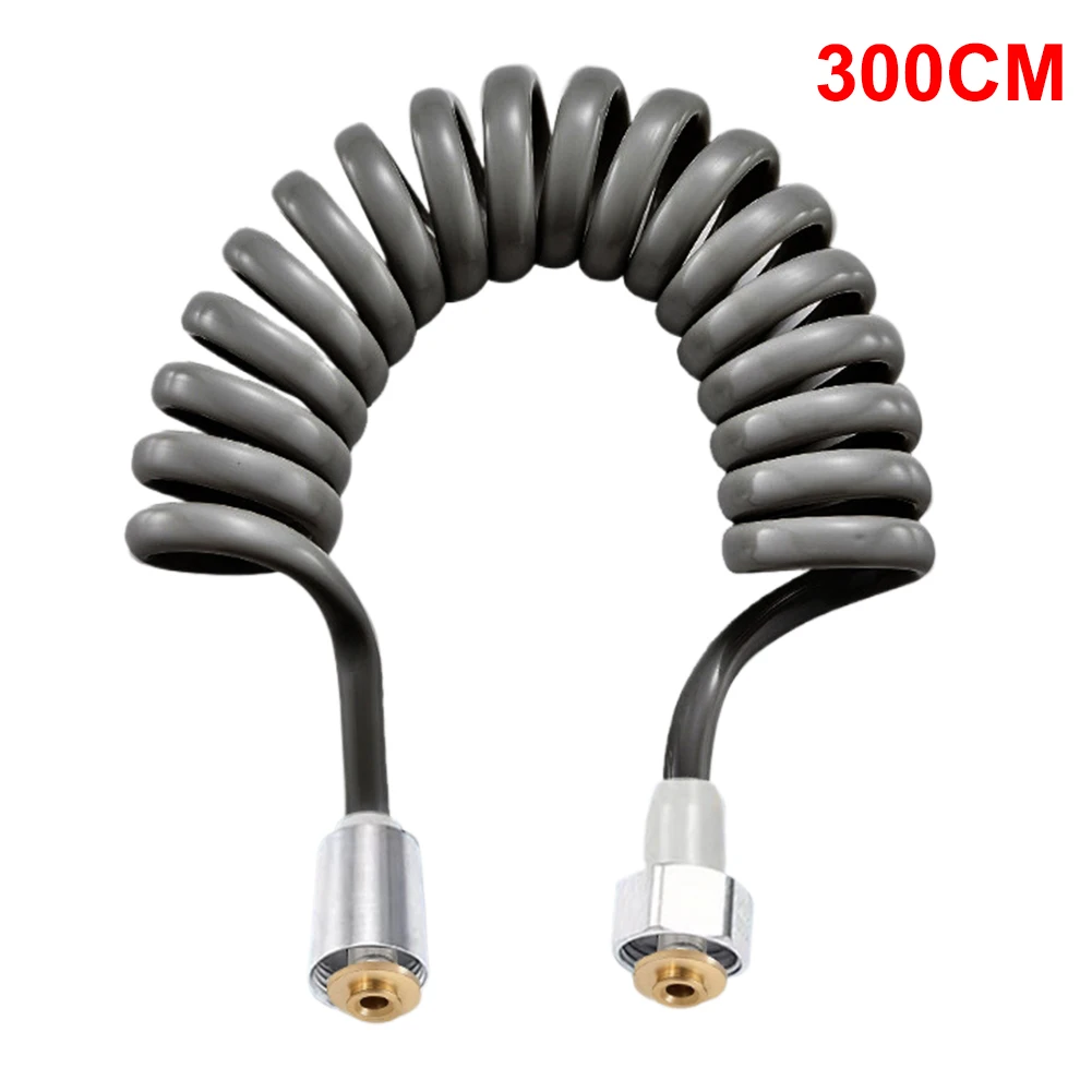 (2M/3 Meters/5 M)--Flexible Spring Shower Hose | 2/3/5M Anti-Wrap Water Hose Telephone Line Spring Extension Hand Sprayer Pipe Retractable Tube Bathroom Toilet Bidet Accessories Feature: 1. Easy Installation: The flexible spring shower hose is designed for easy installation without the need for additional tools, allowing you to set it up on your bathtub within minutes. Its hassle-free setup ensures a quick and efficient upgrade to your shower system. 2. Universal Compatibility: Featuring a standard G1/2 thread connection, this plumbing hose is universally compatible with most shower systems, making it a versatile choice for any bathroom renovation or upgrade. 3. and Flexible: Crafted from high-quality PU material, our long spring shower head hose tube offers enhanced flexibility, preventing kinks and twists during use. This durability ensures a long-lasting and reliable performance for your shower. 4. Hygienic and Versatile Cleaning: With its extended length, the anti-wrap water hose enables easy cleaning of your bathroom, toilet, or body. Its design promotes hygiene and convenience, allowing you to reach all areas effortlessly. 5. and Flexible Design: The spring extension hand sprayer pipe is made from superior PU material, providing both flexibility and durability. This design prevents the hose from twisting, ensuring a smooth and uninterrupted water flow, enhancing your shower experience.