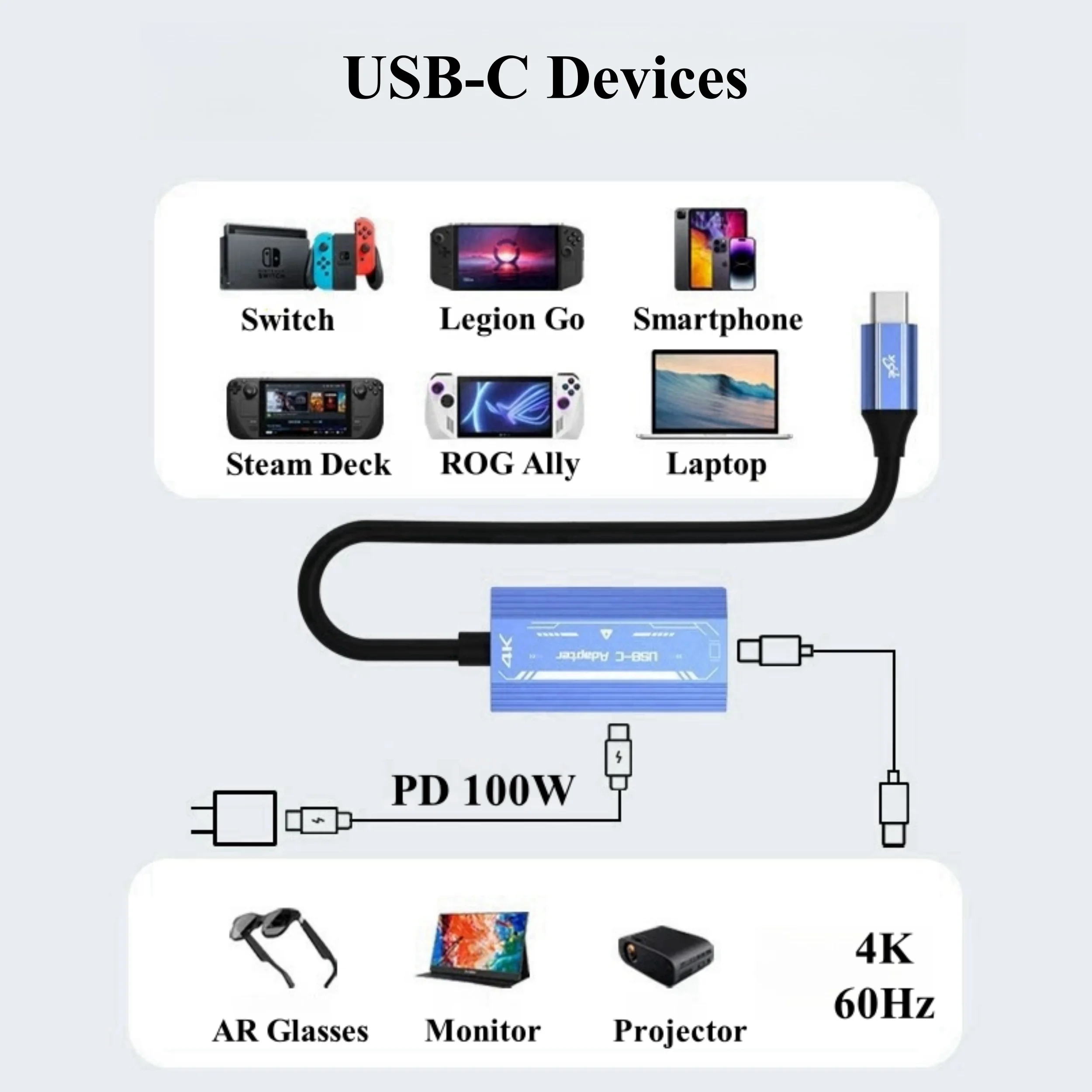 【Versatility】 With the USB-C Multiport Adapter, you can effortlessly connect and power to your AR/VR glasses, displays, projectors, laptops, and other usb-c devices, while enjoying high-speed data transfer.