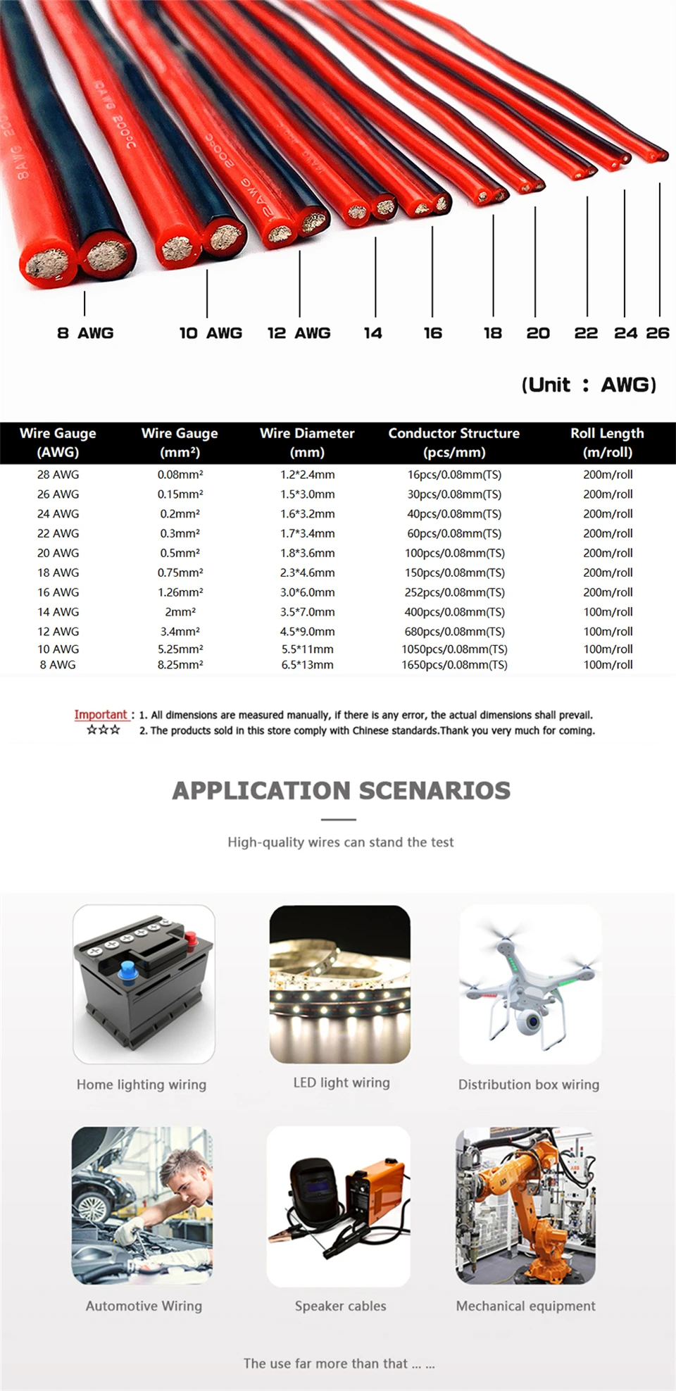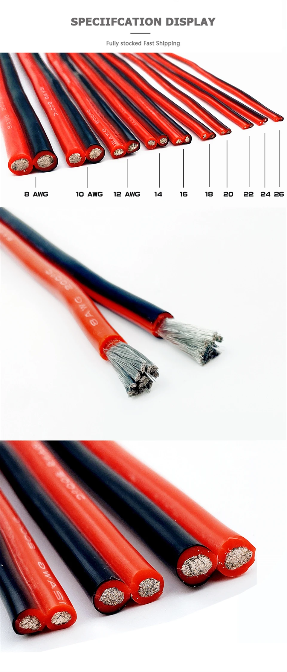 2 Pin cable Black Red Double Silicone wire Very soft Insulate Electrical wires 22awg 20awg 18awg 16awg 14awg 12awg 10awg 8awg