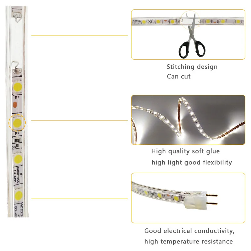 220V High Brightness Led Strip Light Waterproof Led Tape Flexible Ribbon for Outdoor Garden Lighting Room Bedroom Kitchen Decor
