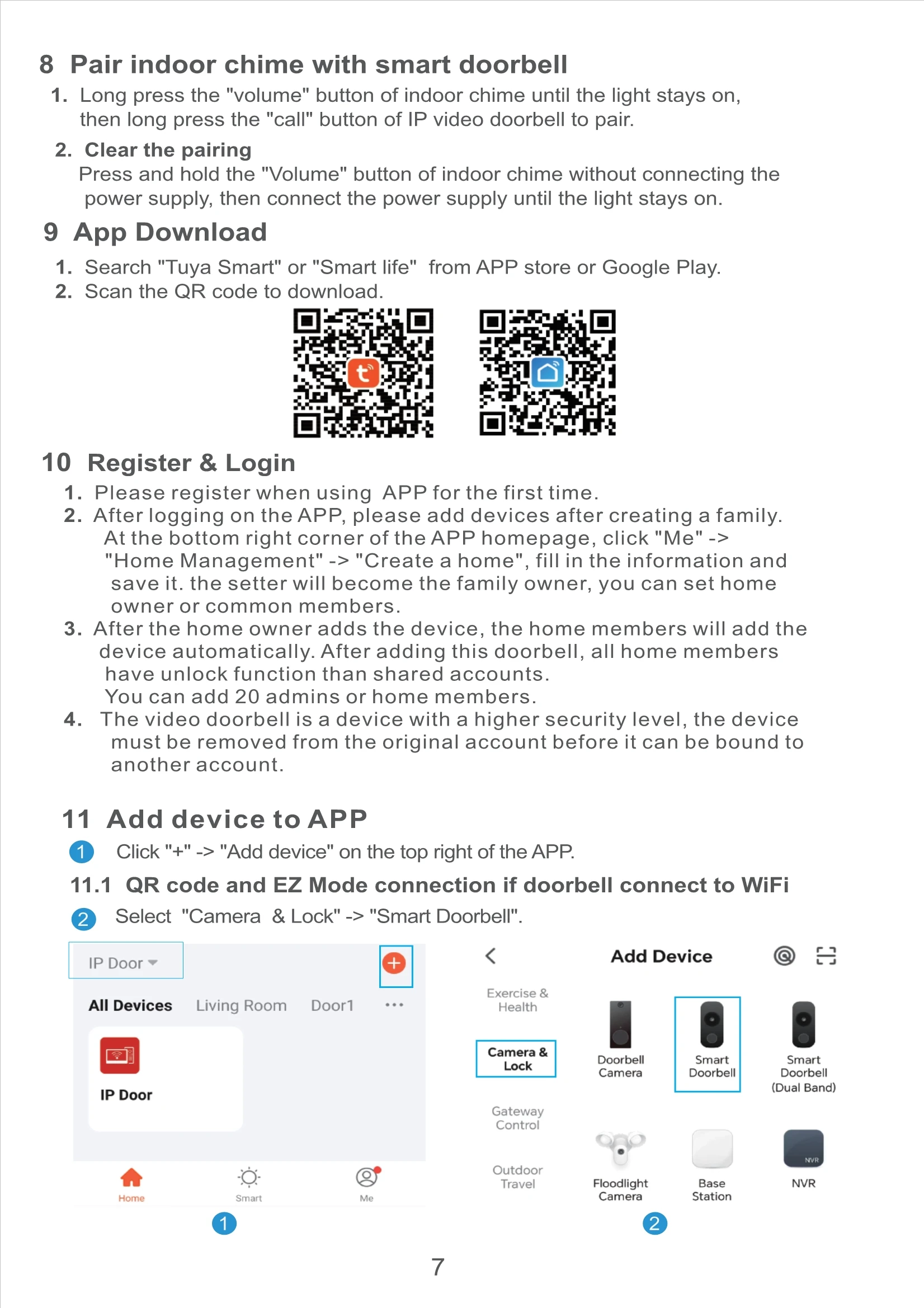 The doorbell camera support "Tuya Smart" or "Smart life" APP.