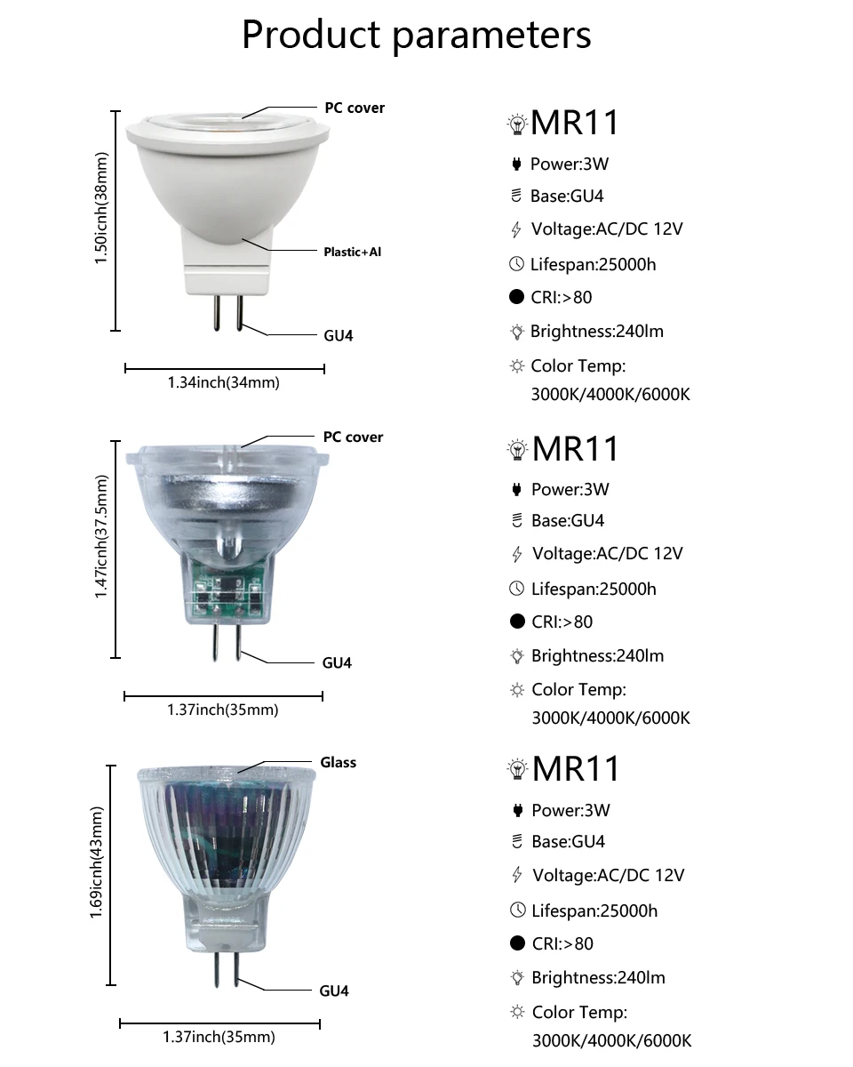 Size: MR11: Ø34*38 mm