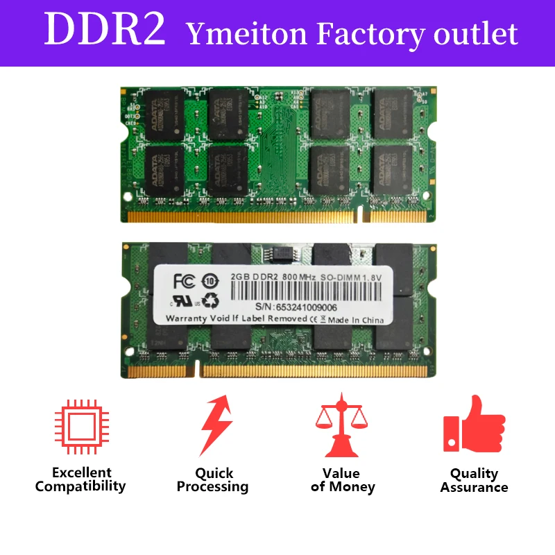 5PCS Ymeiton RAM Free Shipping DDR2 Wholesale Laptop SO-DIMM 2GB 800Mhz notebook ram memories PC card 240pin