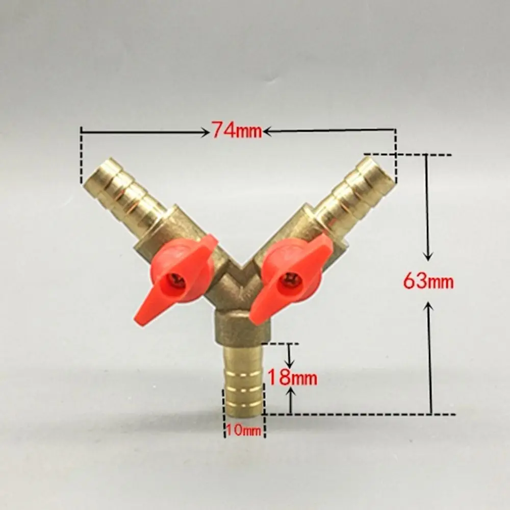 8mm/10mm/12mm Y Type Hose Barb Three 3 Way Brass Shut Off Ball Valve Pipe Fitting Connector Adapter For Fuel Gas Water Oil Air