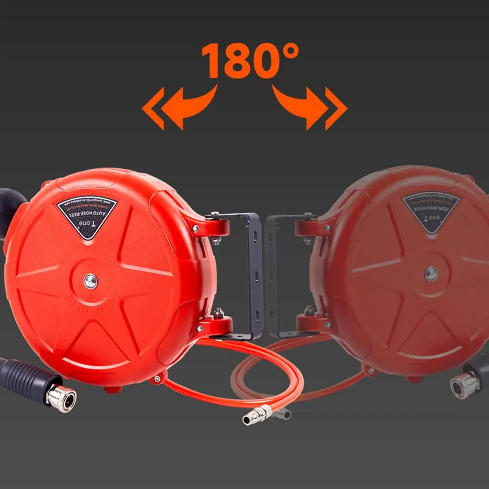 4.Useful and Functional: The 180 pivoting bracket on our pneumatic hose reel gives you a comfortable stretch, allowing you to pivot it in any direction. Retractable and effortless operation makes your work seamless.