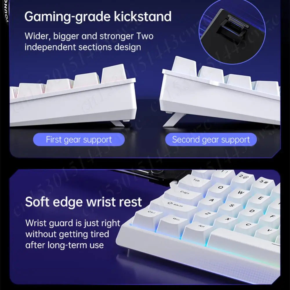 Feature: 1.Adjustable Magnetic Keyboard Switch: Equipped with advanced Hall effect mechanical switches, our magnetic keyboard offers ultra-precise adjustments from 0.01mm to 3.4mm. This enables rapid trigger keyboard action and precise inputs for optimal performance. 2.65% Compact Gaming Keyboard: Designed to save desktop space, the Ace 68 features a compact keyboard layout with 68 keys and adjustable legs for comfortable typing. Enjoy fast response times with mechanical keyboard low latency activation. 3.Dual Function Key with 8K Hz Polling Rate: Experience new levels with our gaming keyboard supporting DKS/MT/TGL/RS/SOCD technologies. With a rapid trigger keyboard wire connection ensuring high polling rates, gain an edge in every game. 4.Web and HUB Driver Support: Personalize your ace 68 with web+HUB driver settings, no extra downloads needed. Adjust the compact keyboard settings for keys, macros, remaps, and RGB, meeting diverse needs. 5.Customized RGB Backlight: Our gaming keyboard features south-facing LED design with customizable macros. Boasts 16.8 million RGB colors and side-lit keycaps to illuminate your setup and enhance your gaming environment. Specification: Origin: Mainland China Product size: 380.00x170.00x80.00mm Product size: 14.96x6.69x3.15inch Material: ABS Connection method with computer: wired connection Key technology: magnetic axis Number of keys: 68 keys