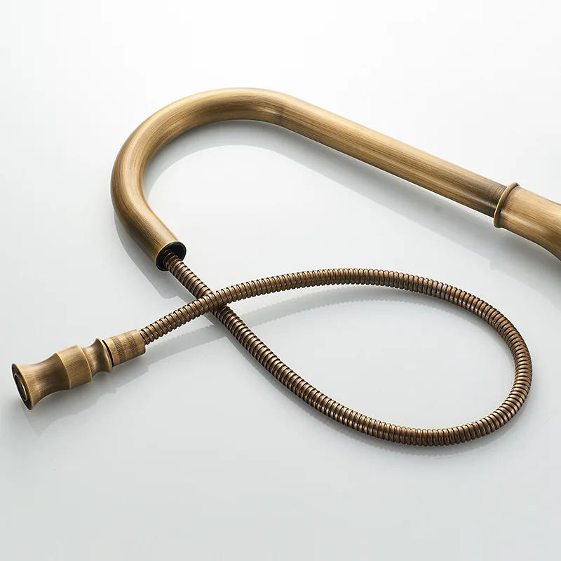 Antique Kitchen Faucet Pull Out Spray Kitchen Sink Single Handle Deck Mount Water Crane 360° Rotation Hot Cold Water Mixer Tap
