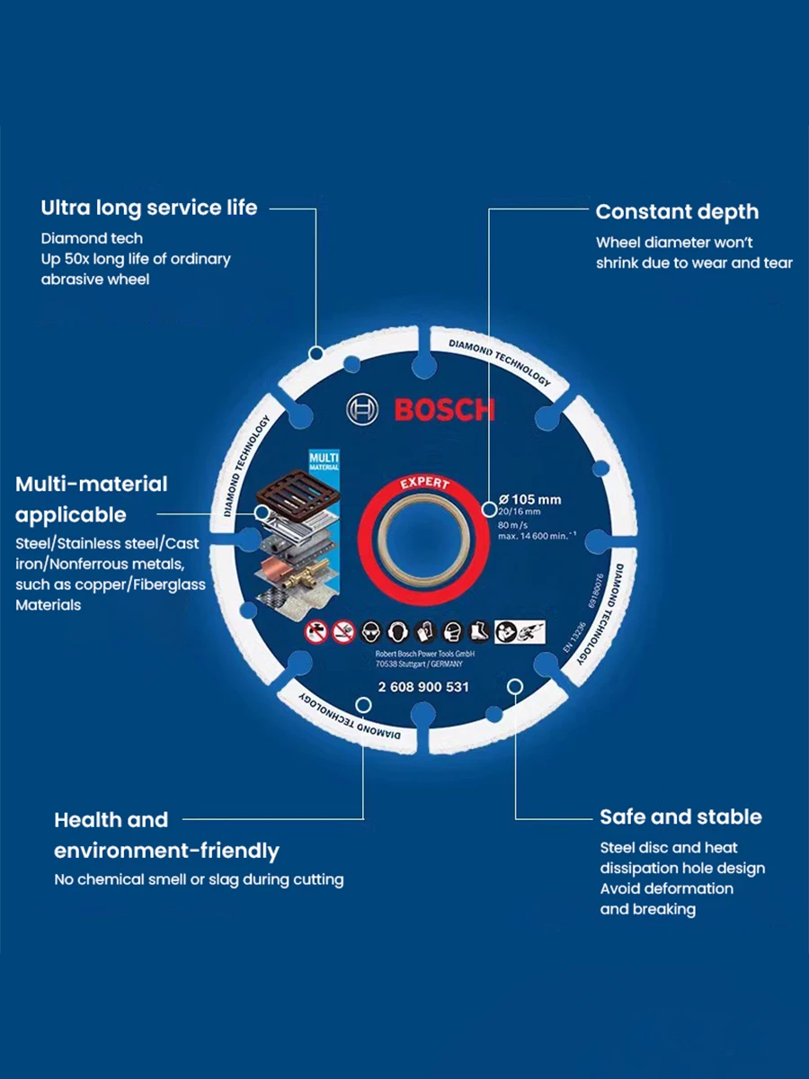Bosch Diamond Metal Cutting Wheel Multi-Material Cutting 105Mm Disc Angle Grinder Saw Blade for Stainless Steel Cast Iron Copper