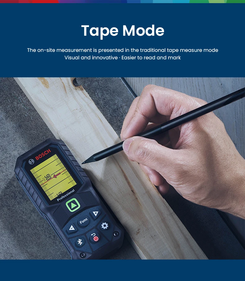 3. Tape mode, presented in the traditional tape measure mode, visual and innovative, easier to read and mark