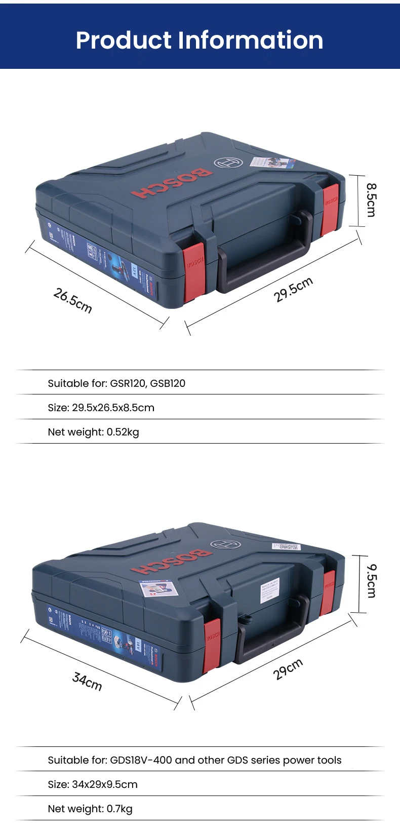 Bosch Tool Storage Box for Bosch Power Tools GSR120-Li /GSB120 /GDS/GBH180-LI Drill Plastic Case Tool 8.9/10.2/12/14.5 Inches