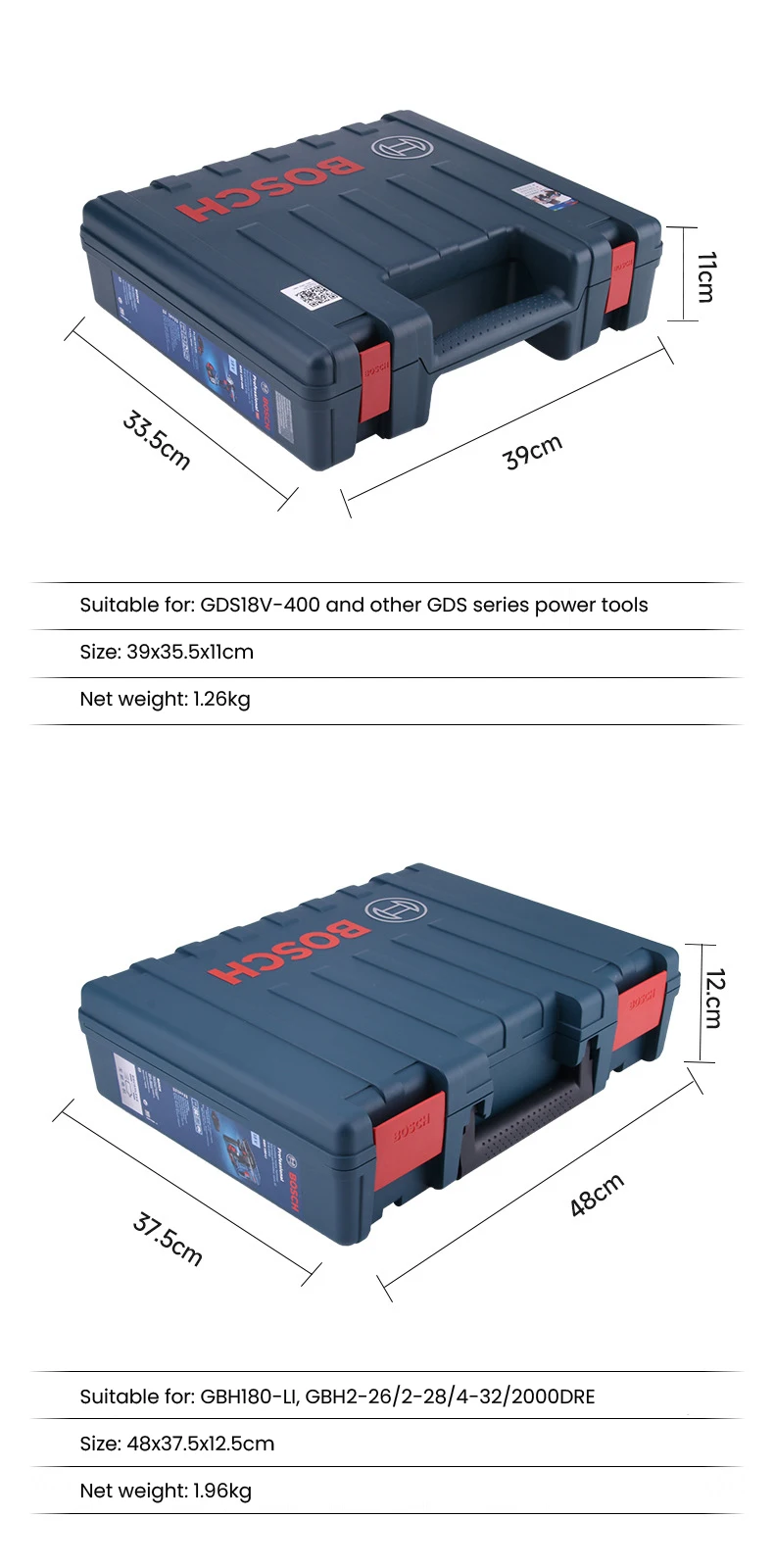 XL: Extra-large size (14.5 inches) 480*375*125mm, suitable for GBH180-LI/GBH2-26/2-28/4-32/2000DRE and other models.