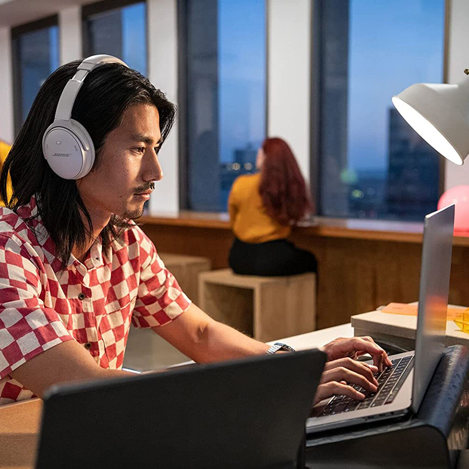 The first noise cancelling headphones are back, with world-class quiet, lightweight materials, and proprietary technology for deep, clear sound and adjustable eq so you can tune your music to your liking. Bose quietcomfort 45 headphones aren’t just an icon reborn – they’re the perfect balance of quiet, comfort, and sound. Plus, everything that made the first around ear headphones an icon is still here. Just refined. Like an updated design with smooth cushions and a clean look. Plush synthetic leather, impact-resistant glass-filled nylon, and cast-metal hinges were all selected for their comfort as well as their durability. Add in minimal clamping force, and you’ll almost forget you’re wearing bluetooth wireless noise cancelling headphones. Enhanced acoustic noise cancelling technology produces the true quiet needed to hear every detail of your music in high fidelity. Or, choose the new aware mode to hear your music and your environment together. Triport acoustic architecture and bose'sinnovative volume-optimized active eq add depth and clarity while maintaining balance at any volume. And lightweight materials such as synthetic leather and glass-filled nylon were meticulously selected for comfort and durability. The headphones offer 22 hours of play time, charge via usb-c, and feature six microphones for clearer calls. Bluetooth 5. 1 maintains a strong connection, and the bose music app guides you through setup, lets you personalize settings, and keeps your headphones’ software up to date.