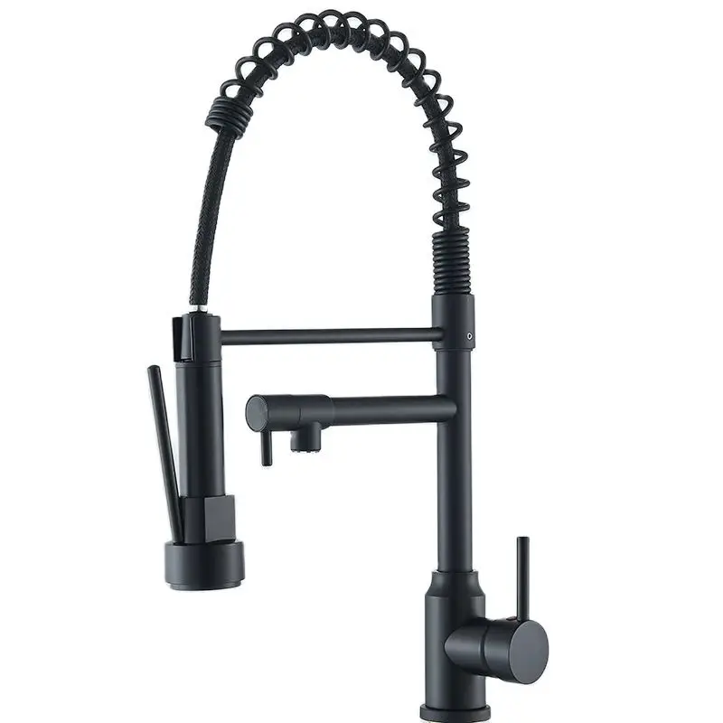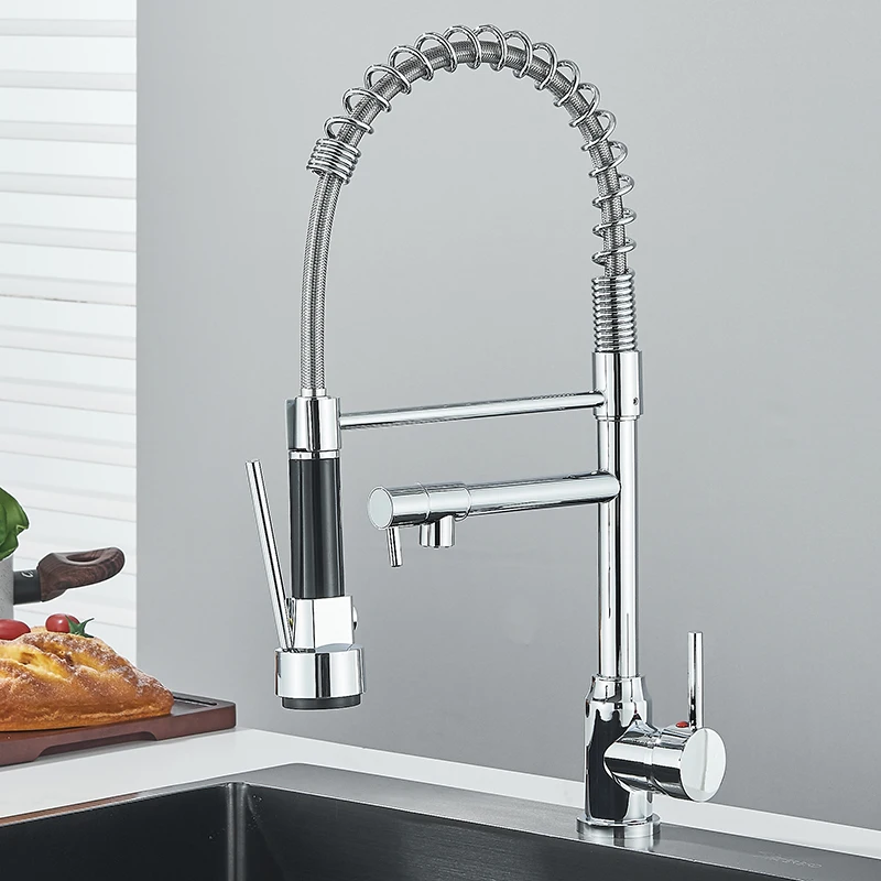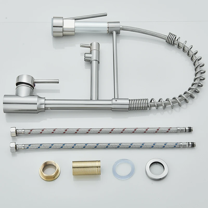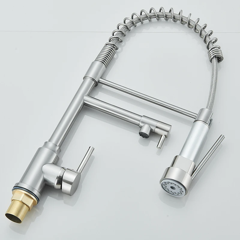 Brushed Nickel Brass Pulling Kitchen Sink Faucets Dual Outlet Water-Cold Hot Washing Basin Tap Deck Mounted Spring Mixer Taps