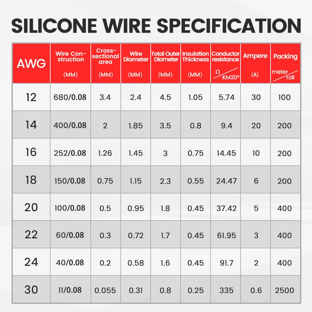 Available in Multiple Sizes - Each GEARit silicone wire is available in a variety of sizes to meet your needs, ranging from 30 AWG to 12 AWG, and lengths from 16 feet to 65 feet.