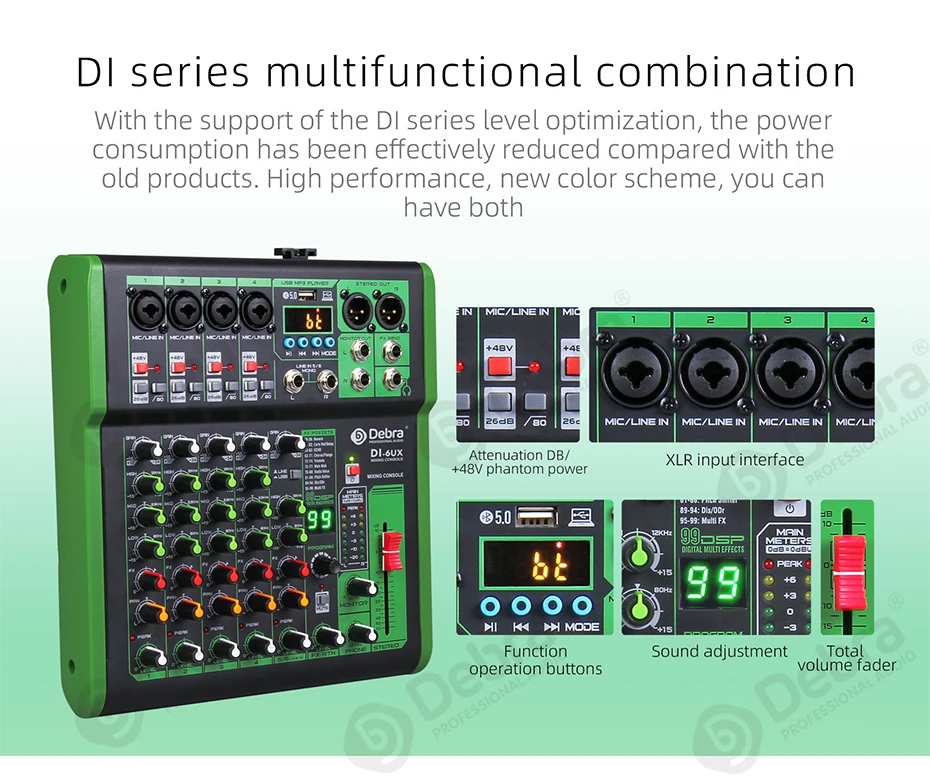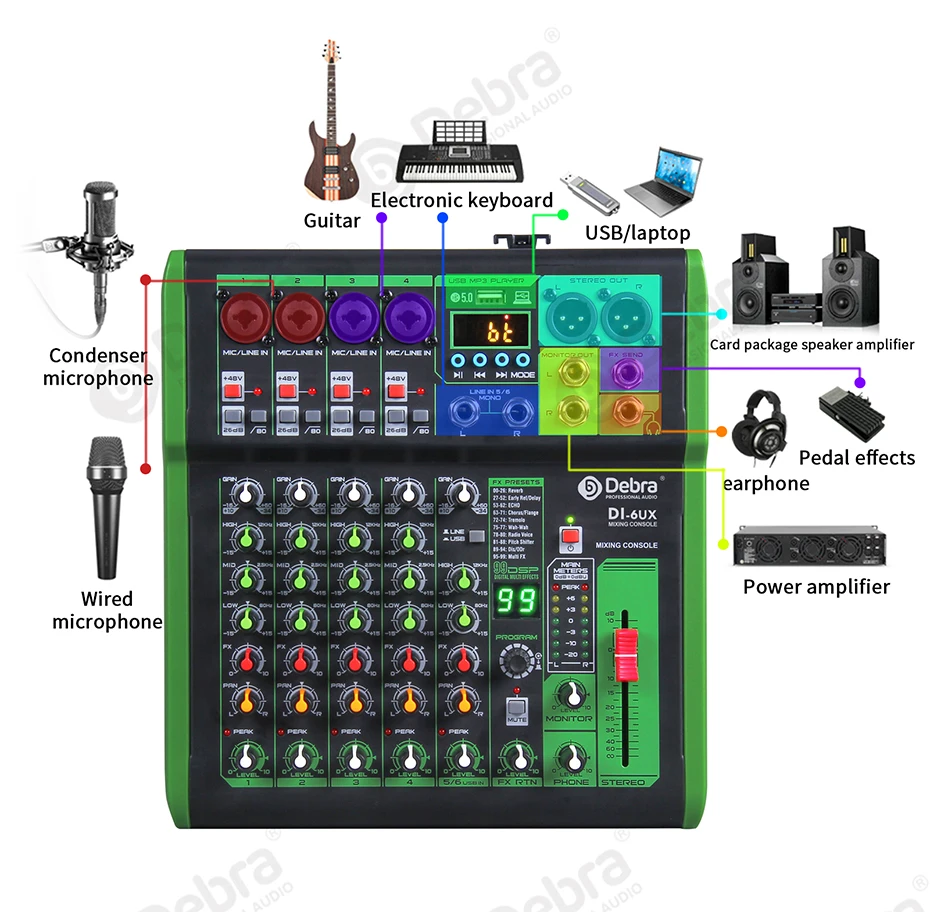 Debra Audio DI-XU Professional Portable Recording Mixer Audio With USB 99 DSP Digital Effects For DJ Mixer Console Karaoke Recording Studio