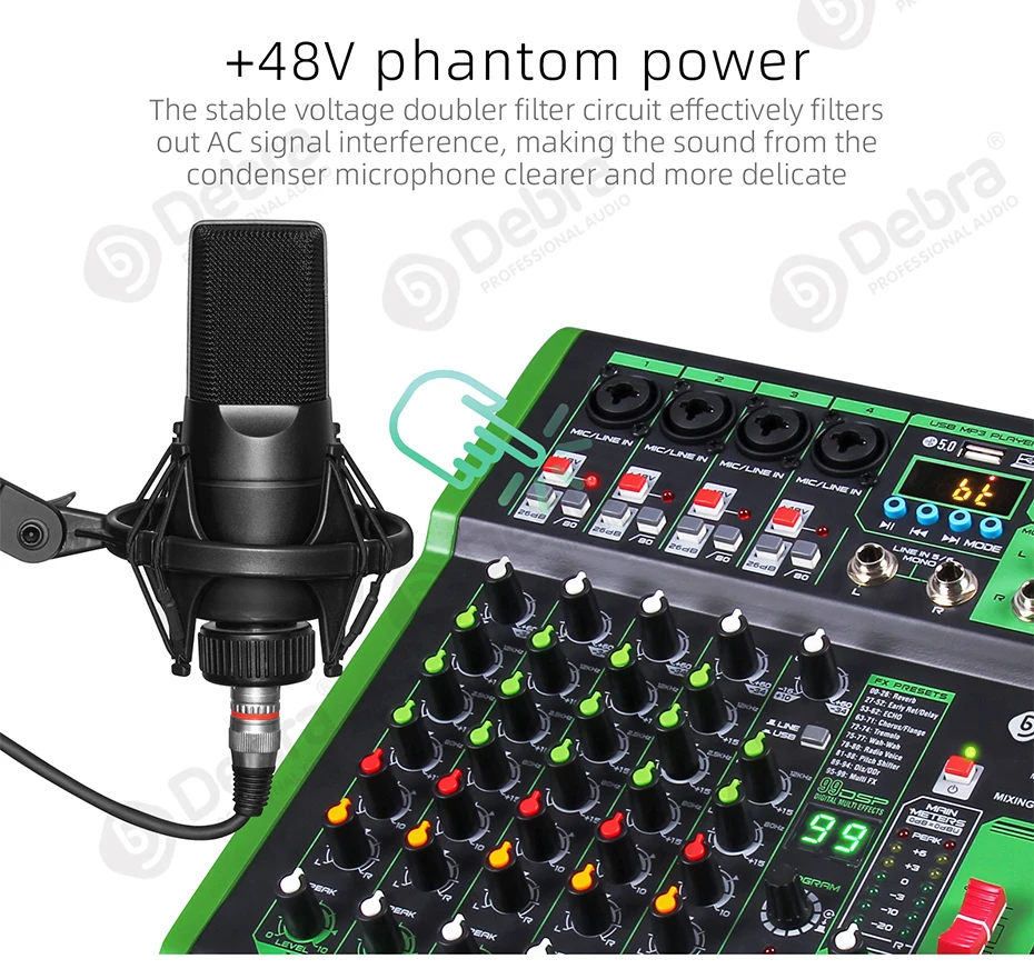 Debra DI pro Mixer Audio for Home Karaoke Live Broadcast Recording Studio with 99 DSP Digital Effects And USB MP3 Input