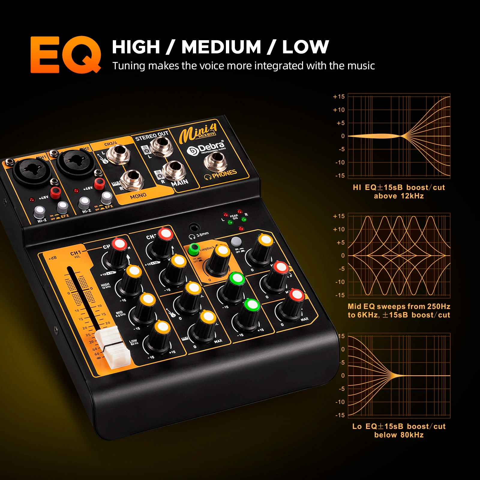 Mini4 is a good companion for personal live broadcasts and recording and mixing of bands and personal studios, allowing users to achieve sound processing in a relaxed and simple way.