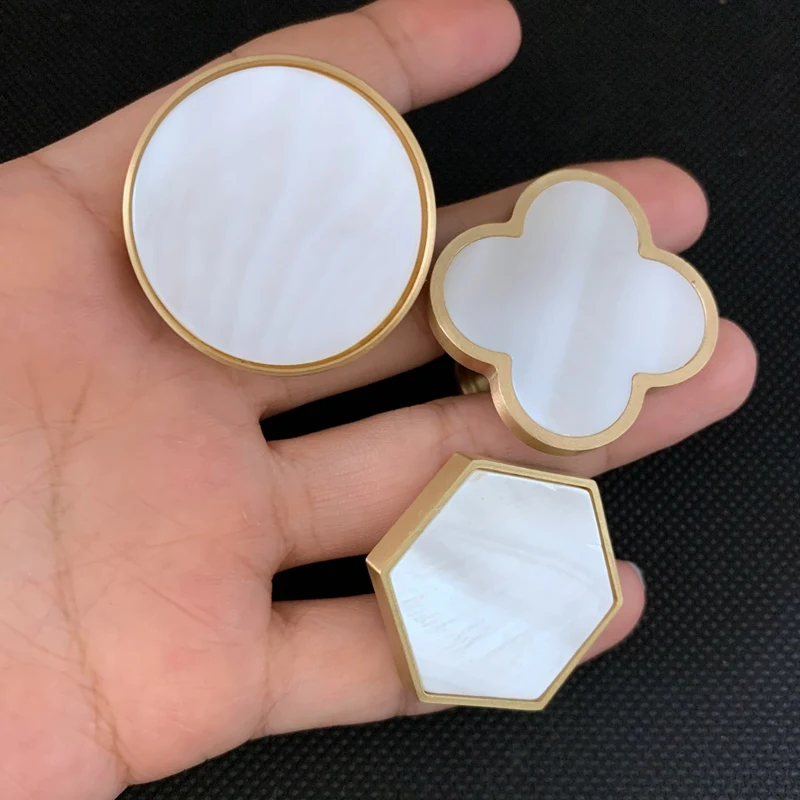 Decorative Kitchen Cabinet Knobs Pulls Brass Drawer Dresser Pulls Natural Shell Cupboard Door Handles-1Pack