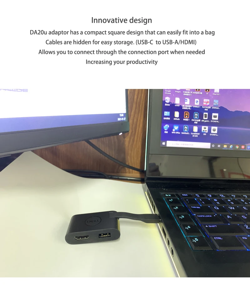 Dell DA20U Adapter-USB-C to HDMI/USB-A -Play and plug