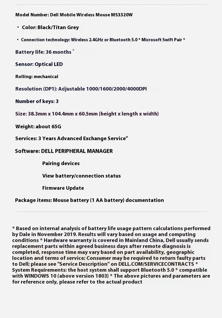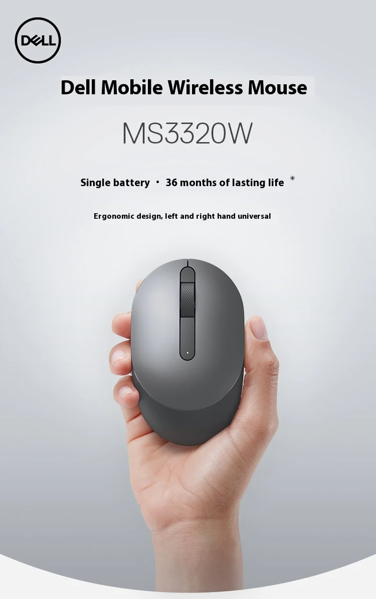 Dell MS3320W Wireless Mouse Bluetooth Office Mouse Wireless Symmetric Mouse Black and GRAY