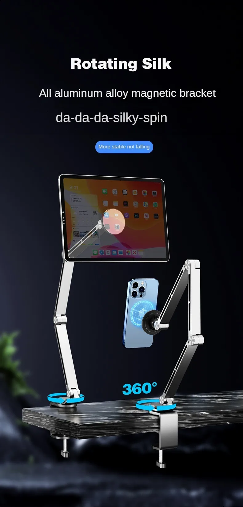 Dktop Magnetic Tablet Phone Stand Magnetic Phone Adjustable Boom Arm Stand Suitable for iPad Lazy Folding Aluminum Alloy holders