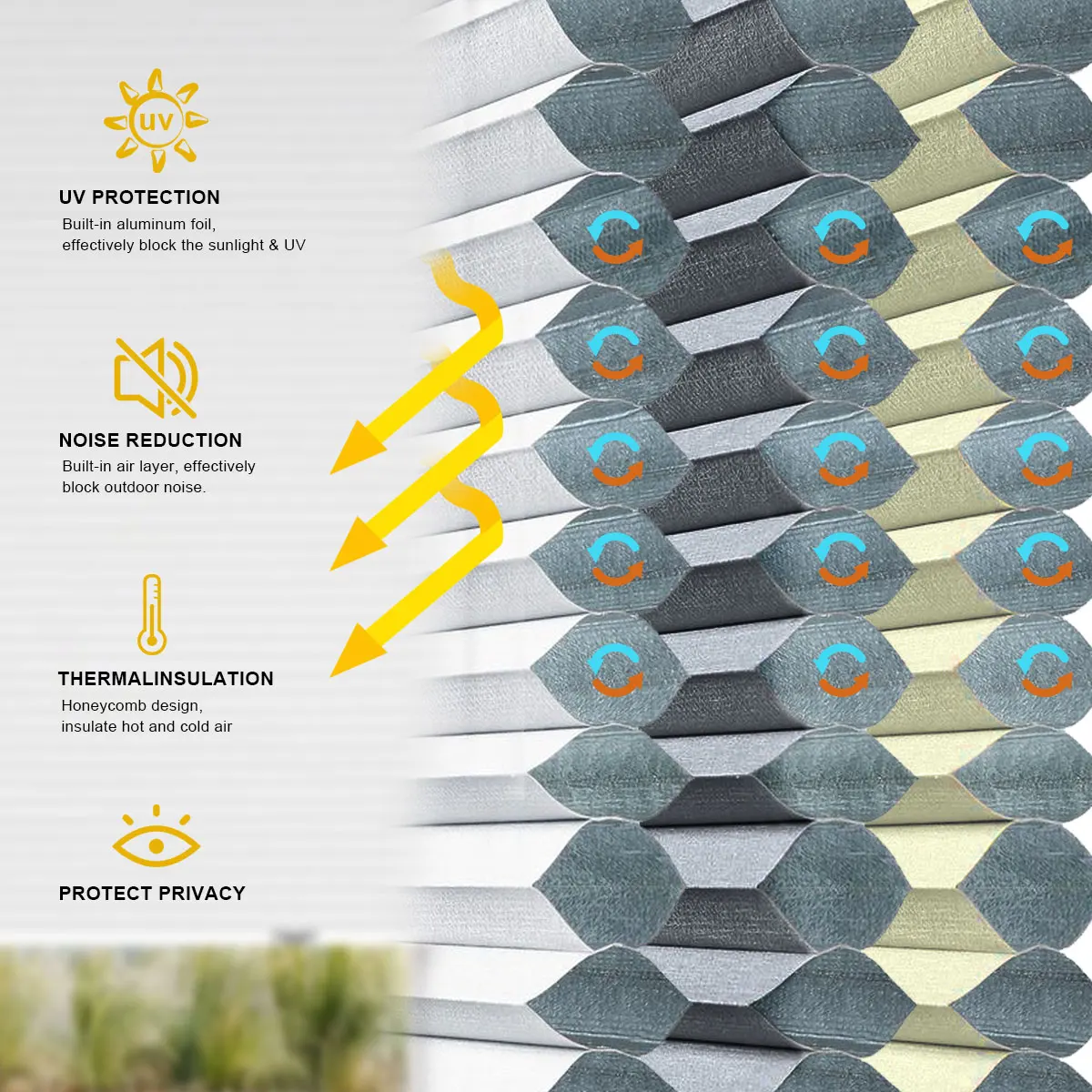 Double Cell Honeycomb Blind Top Down Bottom Up Codless Cellualr Shades for Windows Custom Size Thermal Insulated Noise Reduction