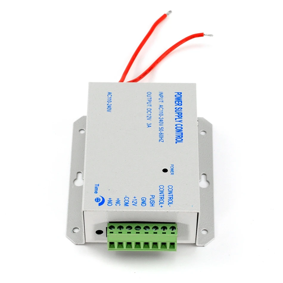 Voltage range input regularly from AC 110V - 240V 50~60Hz DC output: Stabilizator DC12V/ 3A Controls electric lock directly Power: 36W Output Stability: 0.5% Typical Operating Temperature: -20C~65C Adjustable Locking Delay: 0~15sec Material: Metal Outside iron shell dimension:120mm*95 mm*38mm Net Weight: 315g