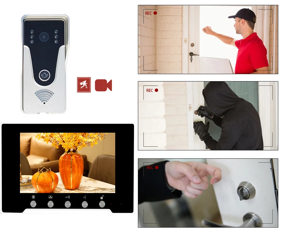The monitor will record video or picture automatically when someone ring the doorbell or motion detection is triggered