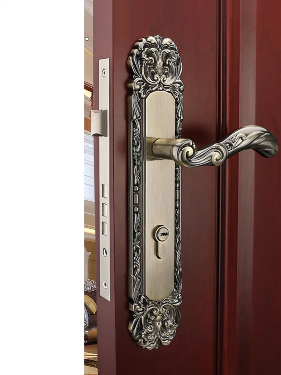 European Double-sided Handle Lock Aluminum Alloy Quiet Security Door Lock Light Luxury Wooden Door Hardware Lock with Key