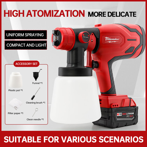 Milwaukee 600W Electric Spray Gun Wall Graffiti Furniture Coloring Atomization Tool 800ML Large Capacity Spray Gun Specifications:Voltage:21VWidth:200-300mmSpray distance:200-250mmAir flow:160L/MinMotor speed:39000R MSRP: Was: Now: $130.70 Options