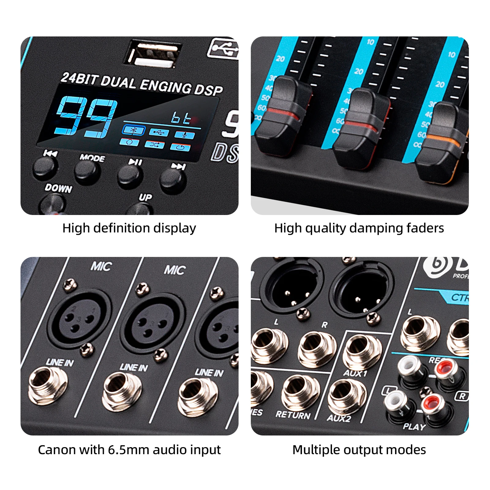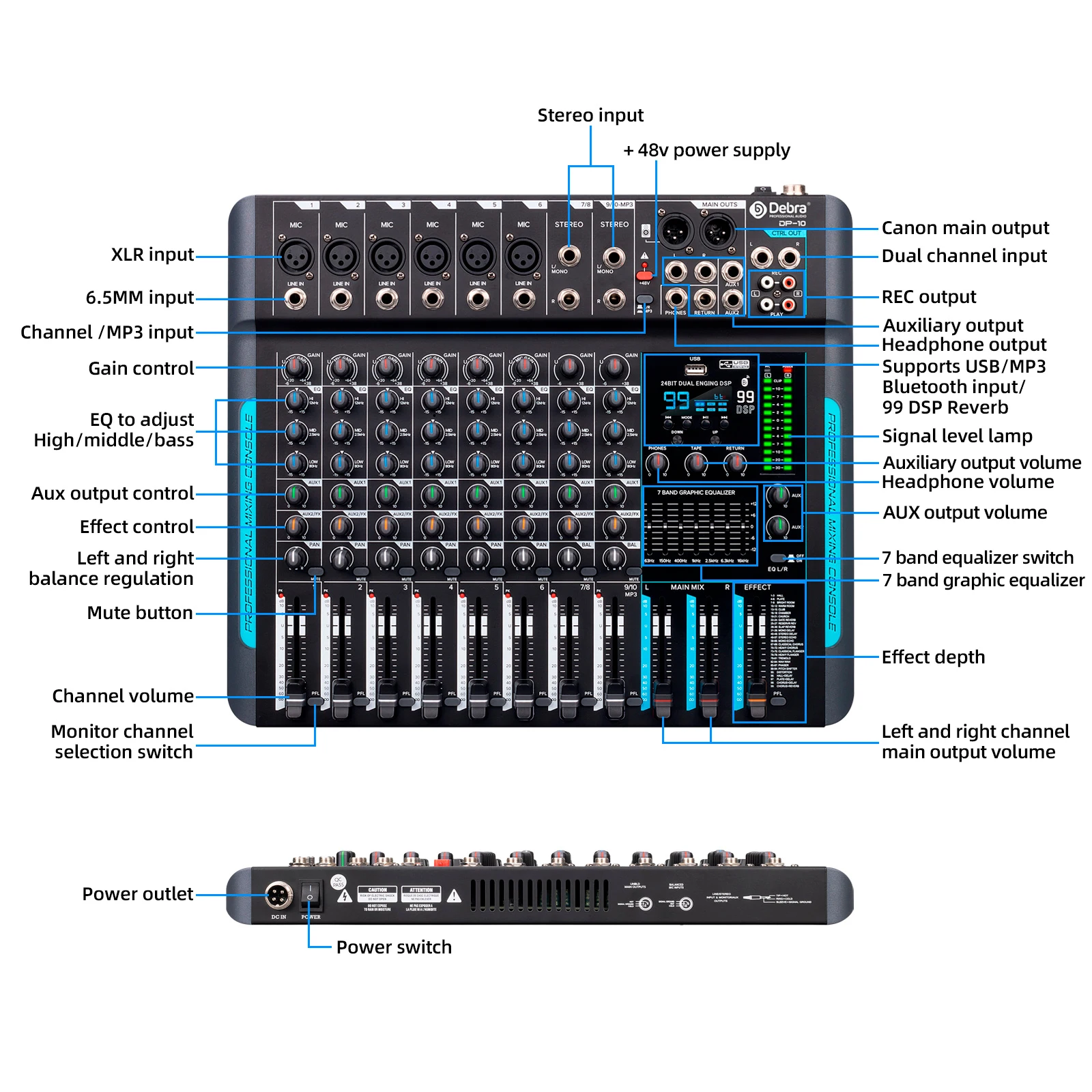 IKGE DP-10 Professional Gig Mixer DJ Mixer 99 DSP Reverb Adjustment Bluetooth Connection For Stage Performance, Recording Studio