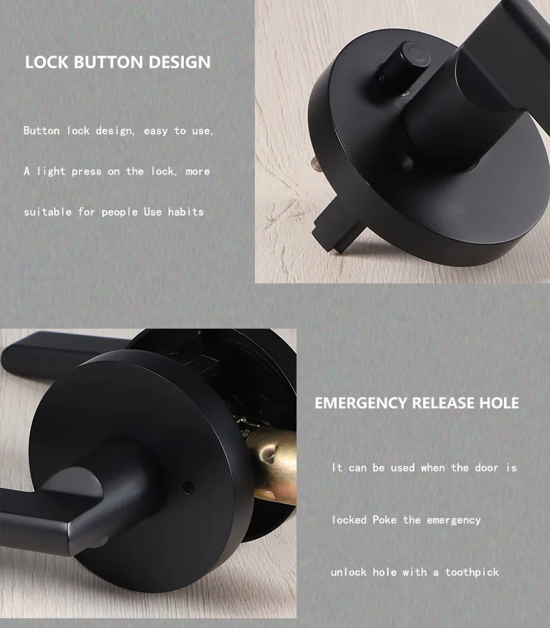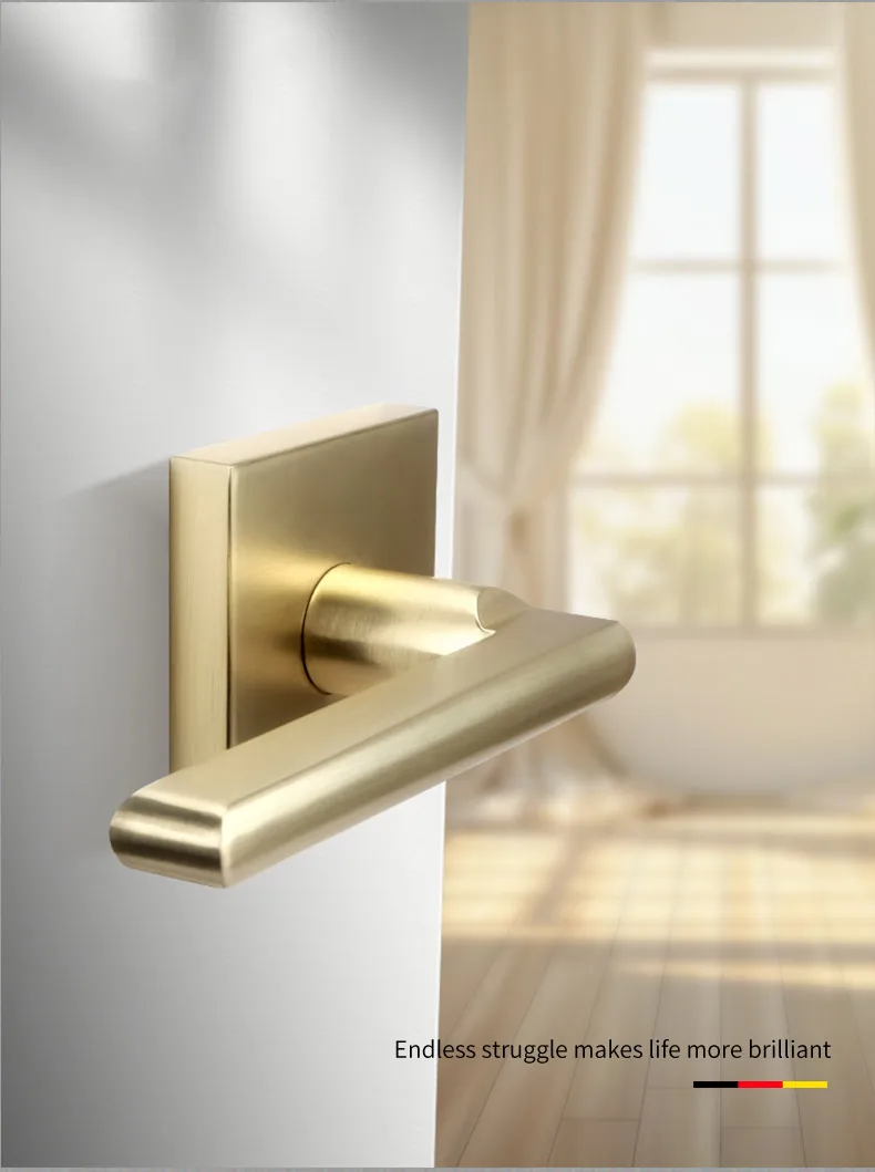 Indoor Bathroom Lock Household Square Hidden Button Bathroom Door Lock Zinc Alloy Room Channel Keyless Golden Door Handle