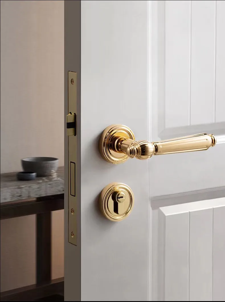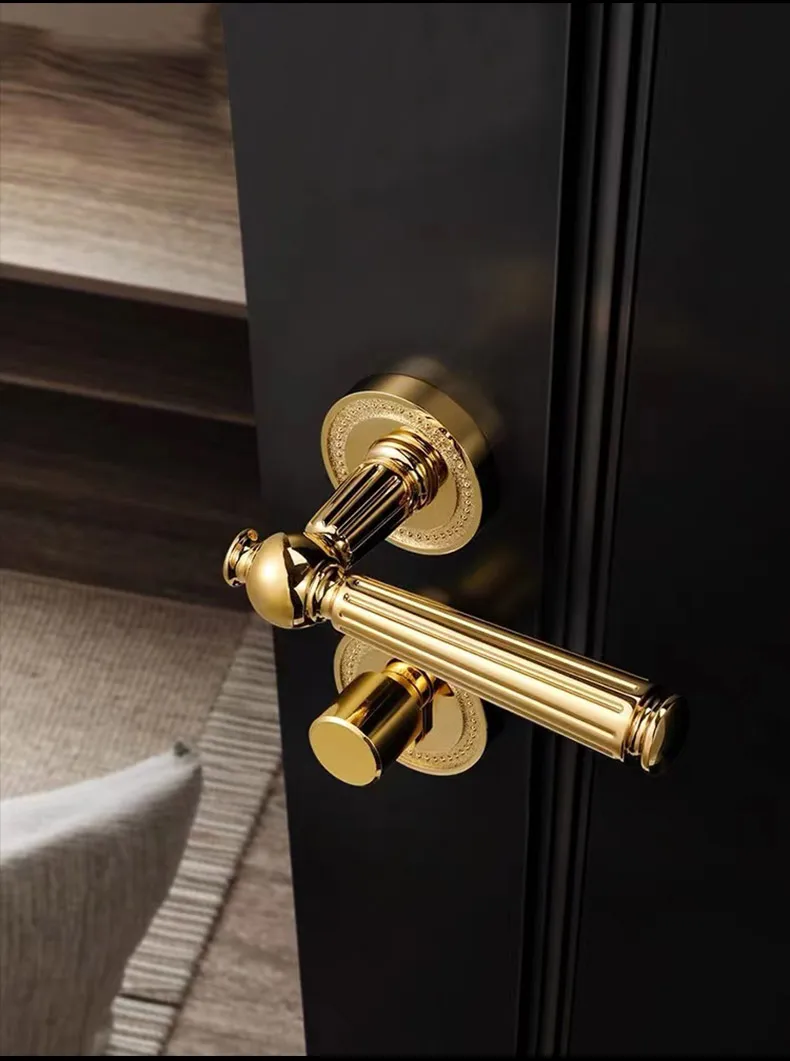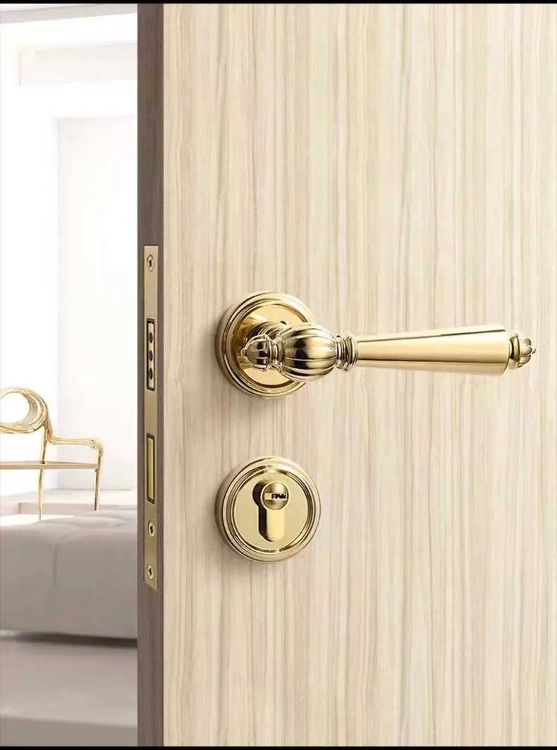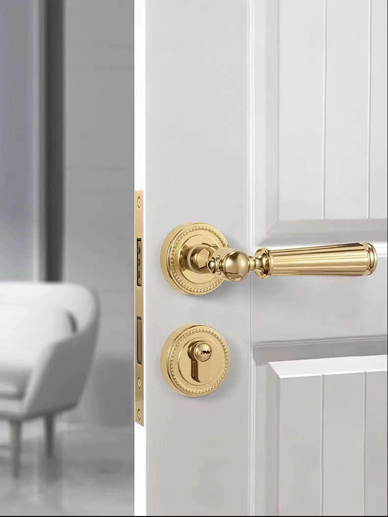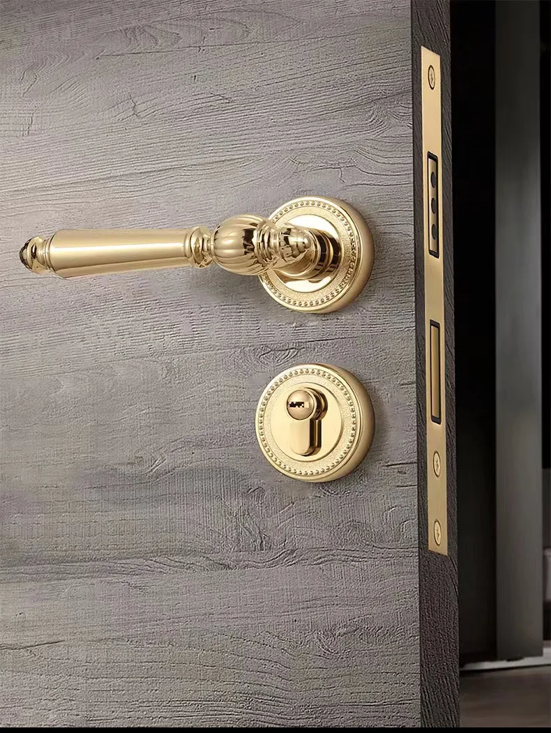 Interior Bedroom Door Lock Gold Room Home Wooden Door Handle Split Body Mute Magnetic Suction Retro French Room Door Lock