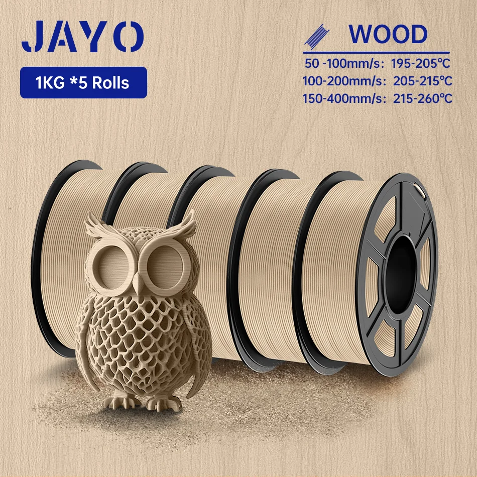 Engineered with a ±0.02 mm tolerance, JAYO pla wood filament ensures smooth feeding and extrusion, preventing clogs. Each roll is dried for 24 hours and vacuum-sealed for superior performance.