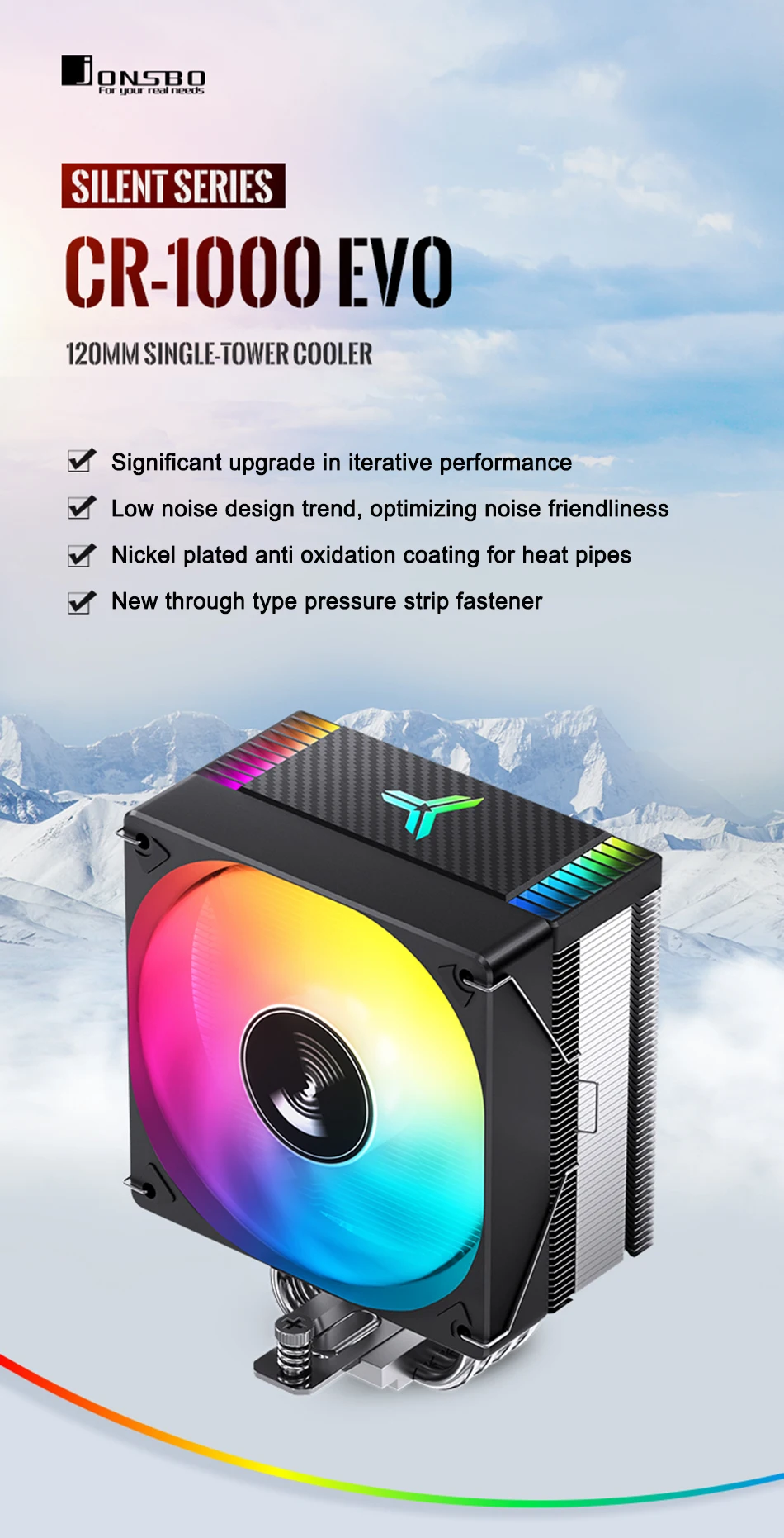 JONSBO CR-1000 EVO Tower CPU Cooler Nickel Plated 4 Heat Pipe 5V 3PIN ARGB Fan Air-Cooled Radiator For LGA1700 115X 1200 AM4 AM5