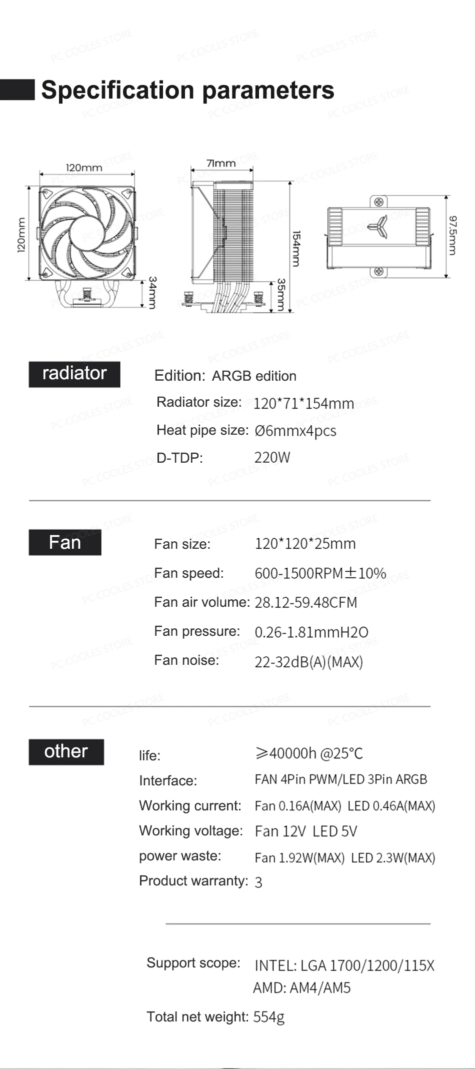 Scope of Application: INTEL: LGA 1700/1200/115X AMD: AM4/AM5