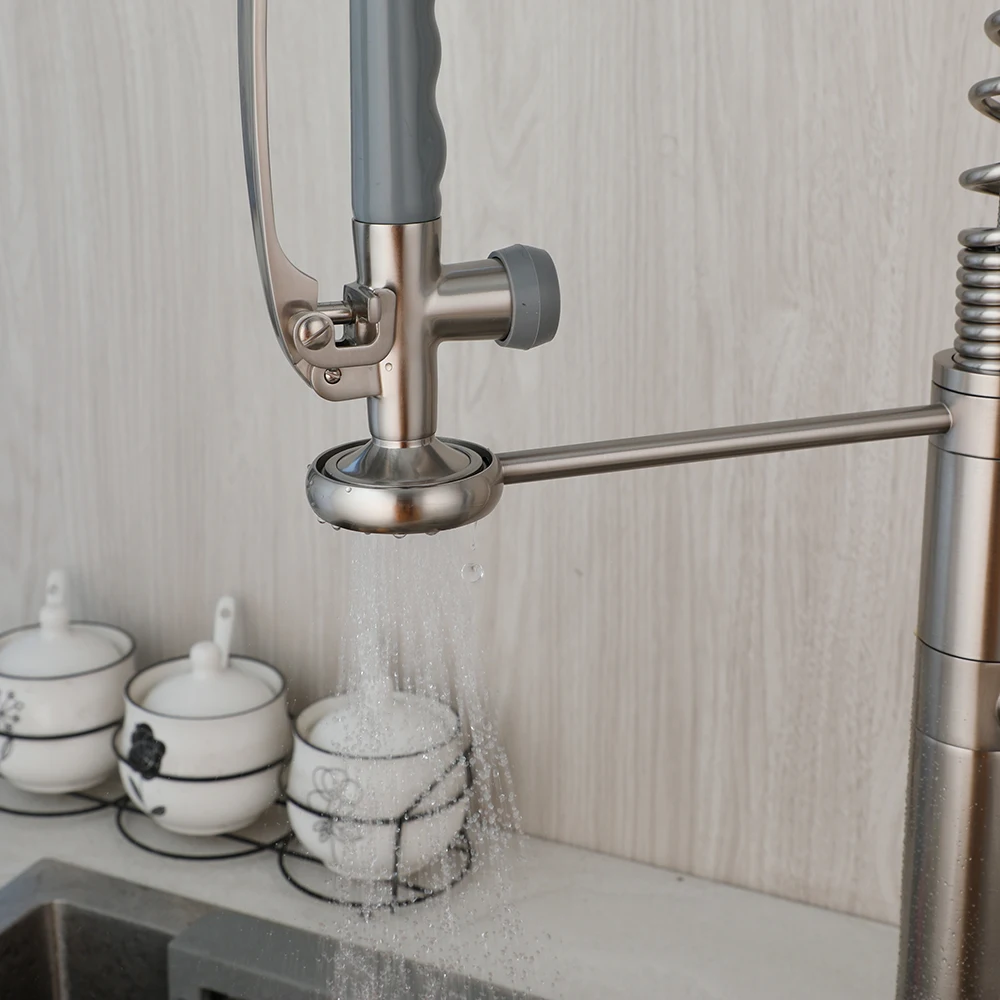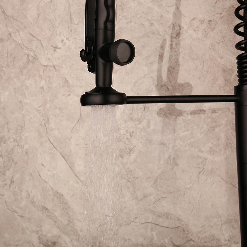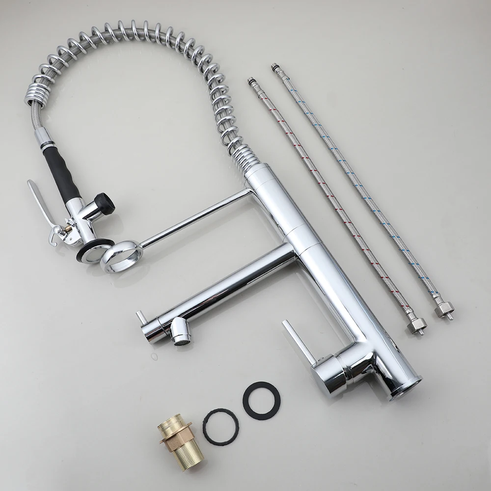 KEMAIDI Brass Kitchen Sink Faucet Spring Pull Down Kitchen Faucets Hot Cold Water Mixer Tap 360 Rotation Crane Tap Chrome/Black