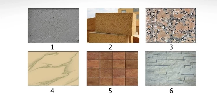 1. Concrete 2. Refractory brick 3. Granite 4. Marble 5. Ceramic 6. Natural slabstone