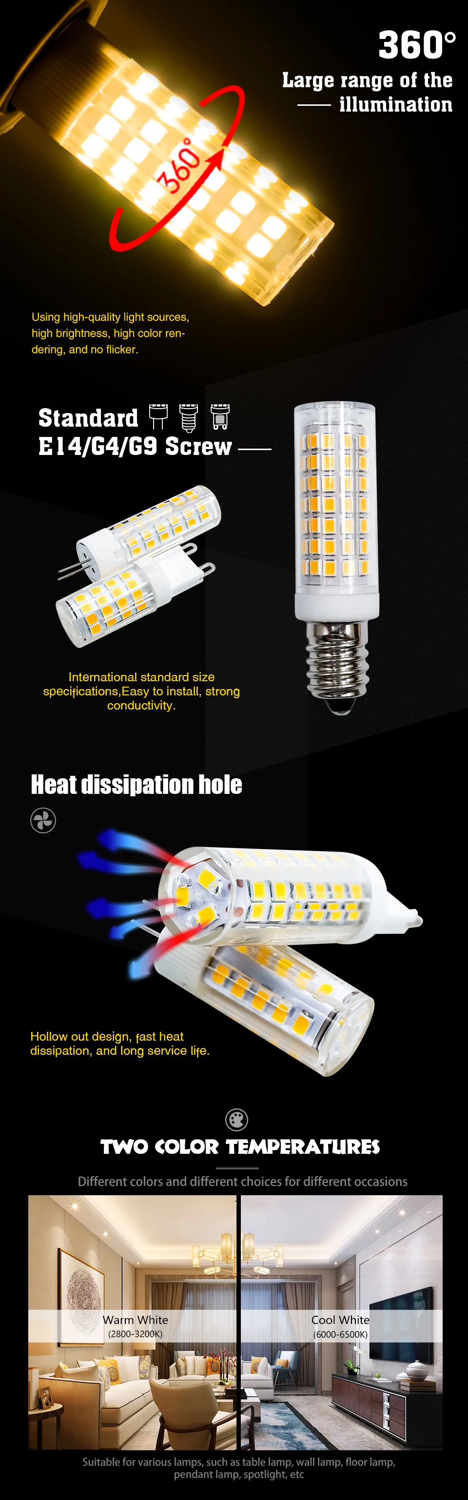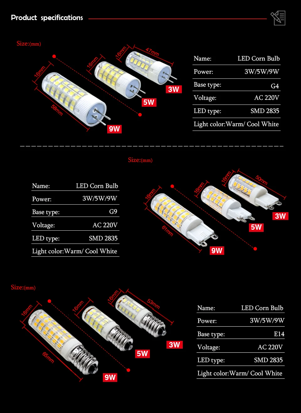 LED G4 G9 E14 3W 5W 9W Light Bulb 220V Led Ceramic Corn Lamp SMD2835 Spotlight Chandelier Replace Halogen Lamps Cold/Warm White