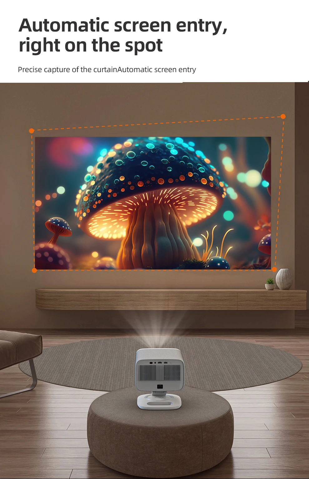 Supports side projection, forward projection, hanging projection, and rear projection in various ways. The 360 ° gimbal can project the image to the ceiling, providing a novel enjoyment of lying down and watching movies