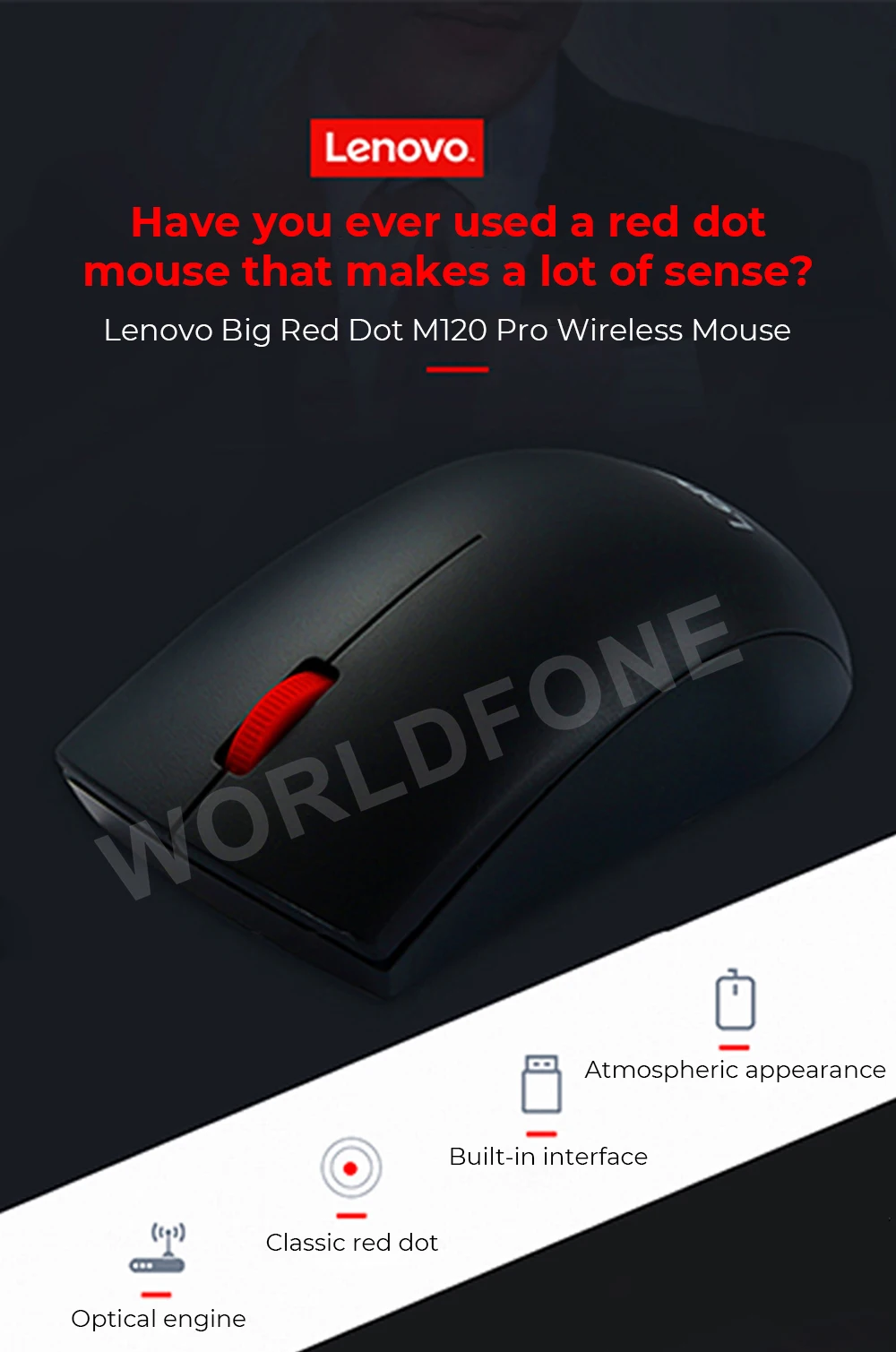 Lenovo M120Pro Wireless Mouse Ergonomic Sensor USB Receiving Gaming Office Mouse 1000PDI MacBook Laptop Universal Accessories