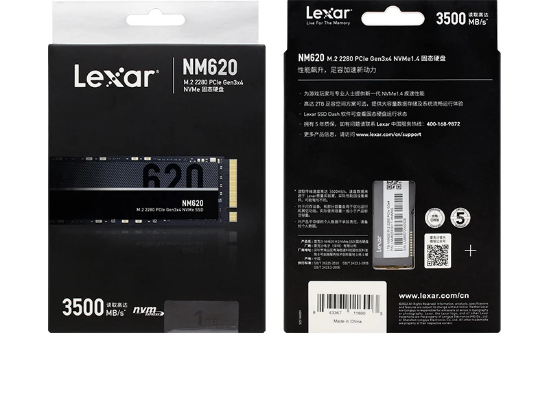 Lexar M.2 2280 PCIe Gen3x4 NVMe SSD NM620 Internal Solid State Drive 256GB 512GB 1TB Hard Drive Up to 3500Mb/s Hard Disk for PC
