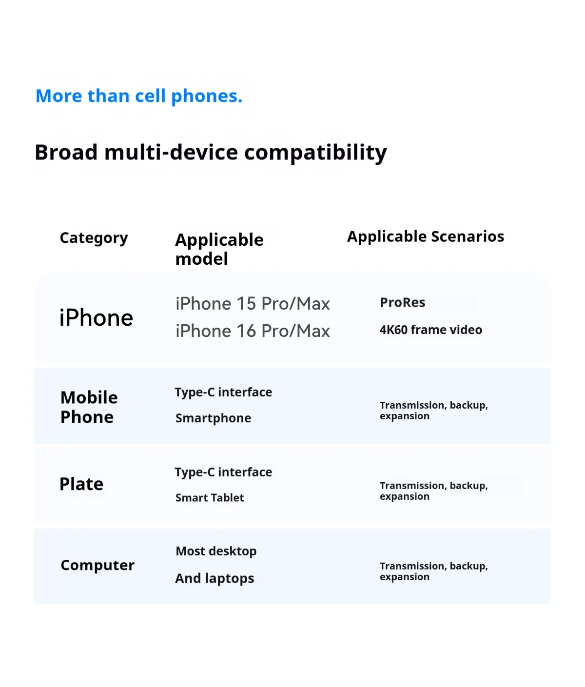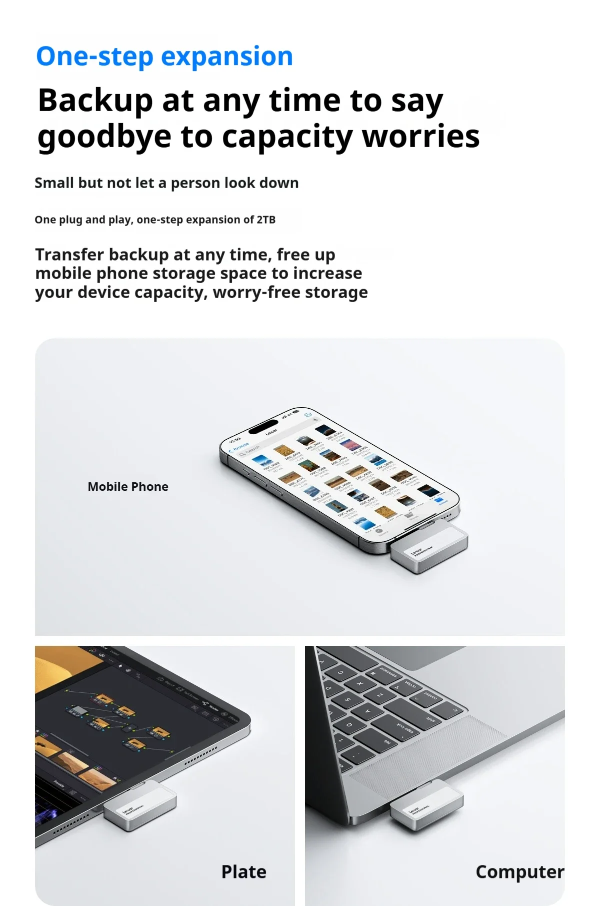 Cell Phone SSD:Read speeds up to 1050MB/s*Write speeds up to 1000MB/s*