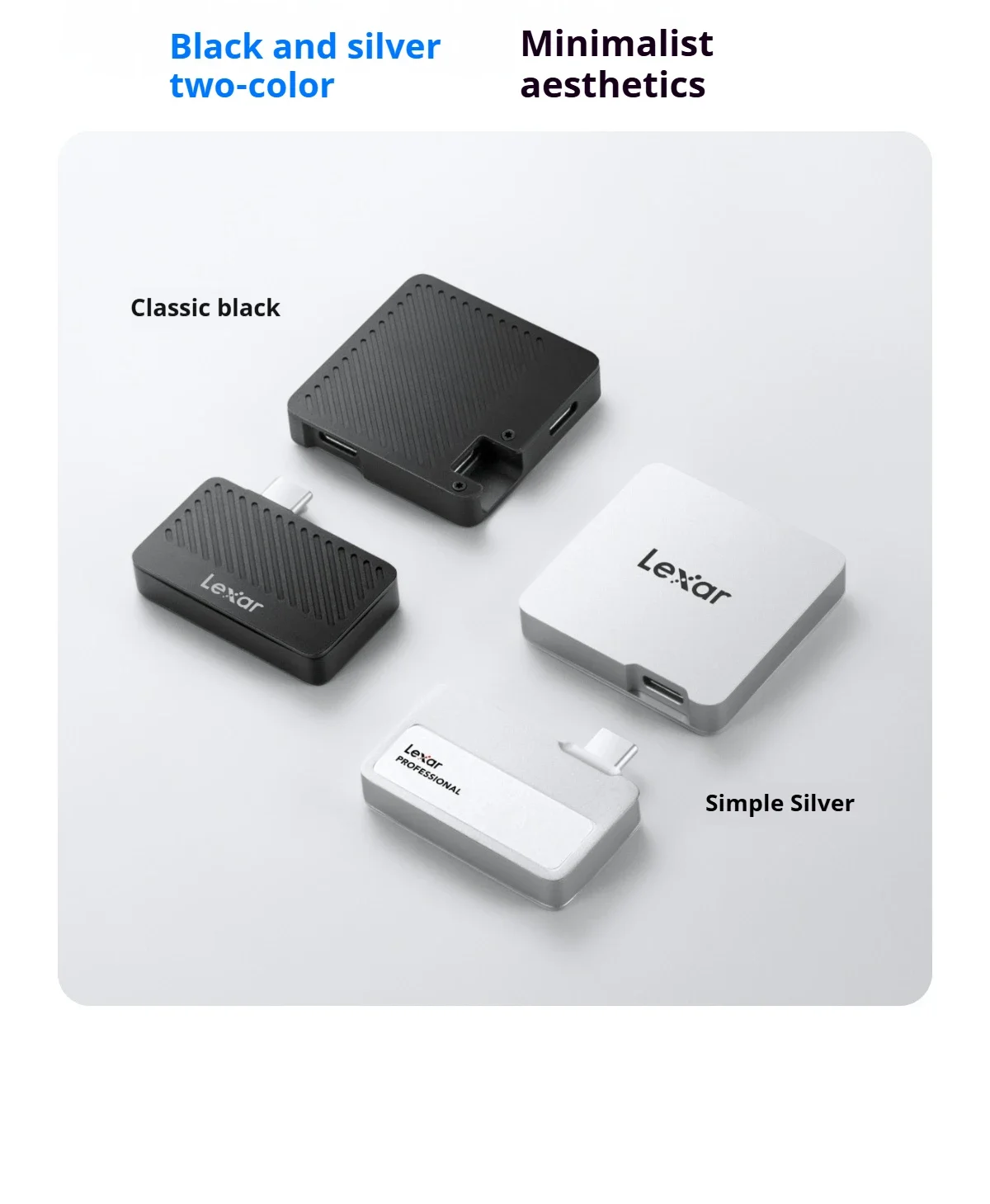 Lexar Professional Go Mobile Portable SSD Type-C USB3.2 External Storage 1TB/2TB with Hub High-Speed 1050MB/s for Mobile Devices