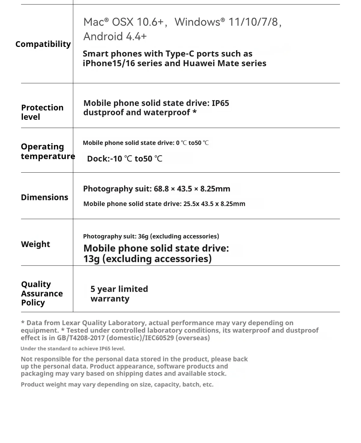 Compatibility: Mac® OSX 10.6+, Windows® 11/10/7/8Android 4.4+ Compatible with iPhone 15/16 series, Huawei Mate series and other Type-C smartphones.
